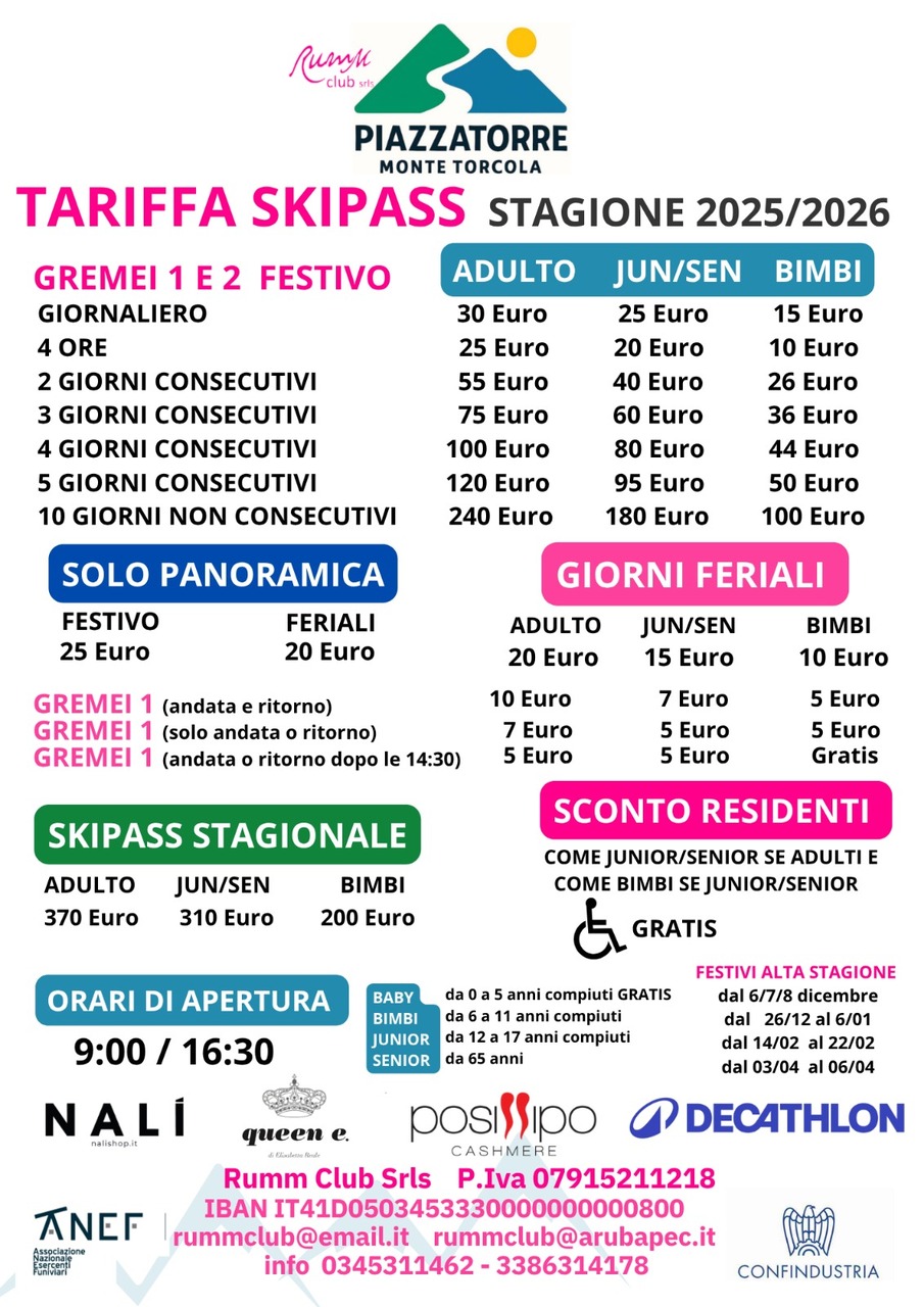 The ski area "Torcola Vaga" offers ski slopes with different grades of difficulty to satisfy the pleasure of each skier and snowboarder.
