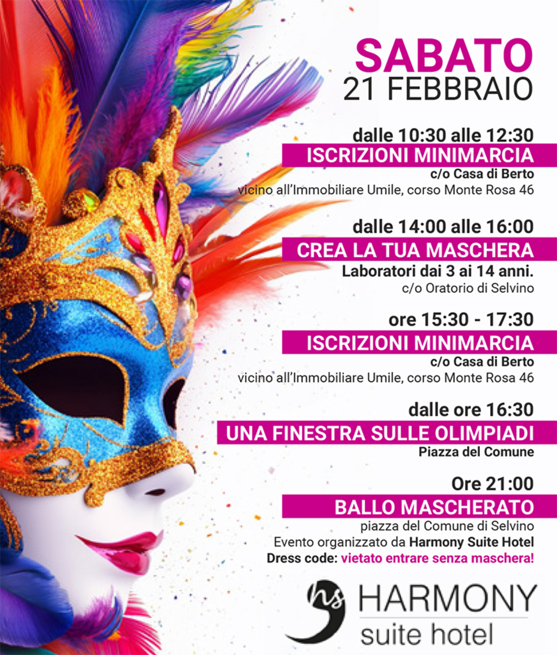 Dalla mattina sarà possibile iscriversi alla minimarcia di domenica e partecipare a un laboratorio per bambini. Alla sera, spettacolo danzante mascherato!