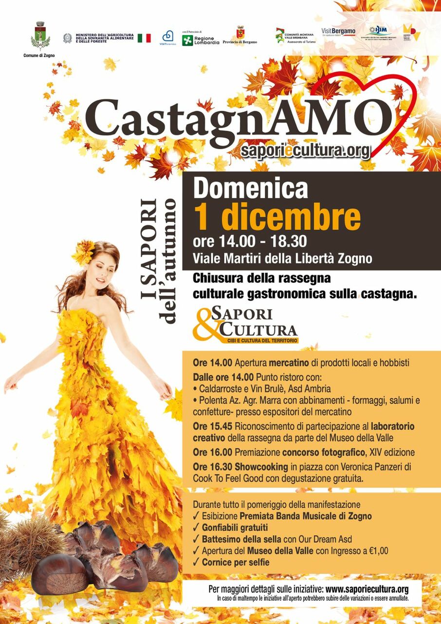 Evento di chiusura della rassegna Sapori&Cultura, cibi del territorio,giunta alla sua sedicesima edizione. Dalle 14.00 attività per grandi e piccoli: showcooking, premiazione del concorso fotografico della rassegna, caldarroste e vinbrùle.