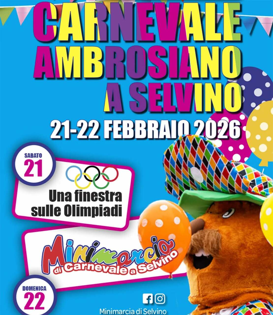 Domenica 22 febbraio 2026 a Selvino si festeggerà insieme il carnevale ambrosiano con la 7a edizione della Minimarcia di carnevale!