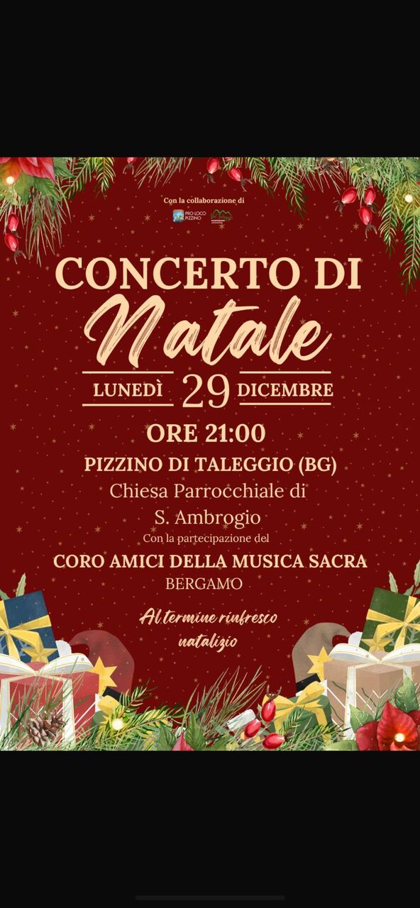 Lunedì 29 dicembre alle ore 21:00 vi aspettiamo alla Chiesa Parrocchiale S. Ambrogio di Pizzino, Taleggio (BG)