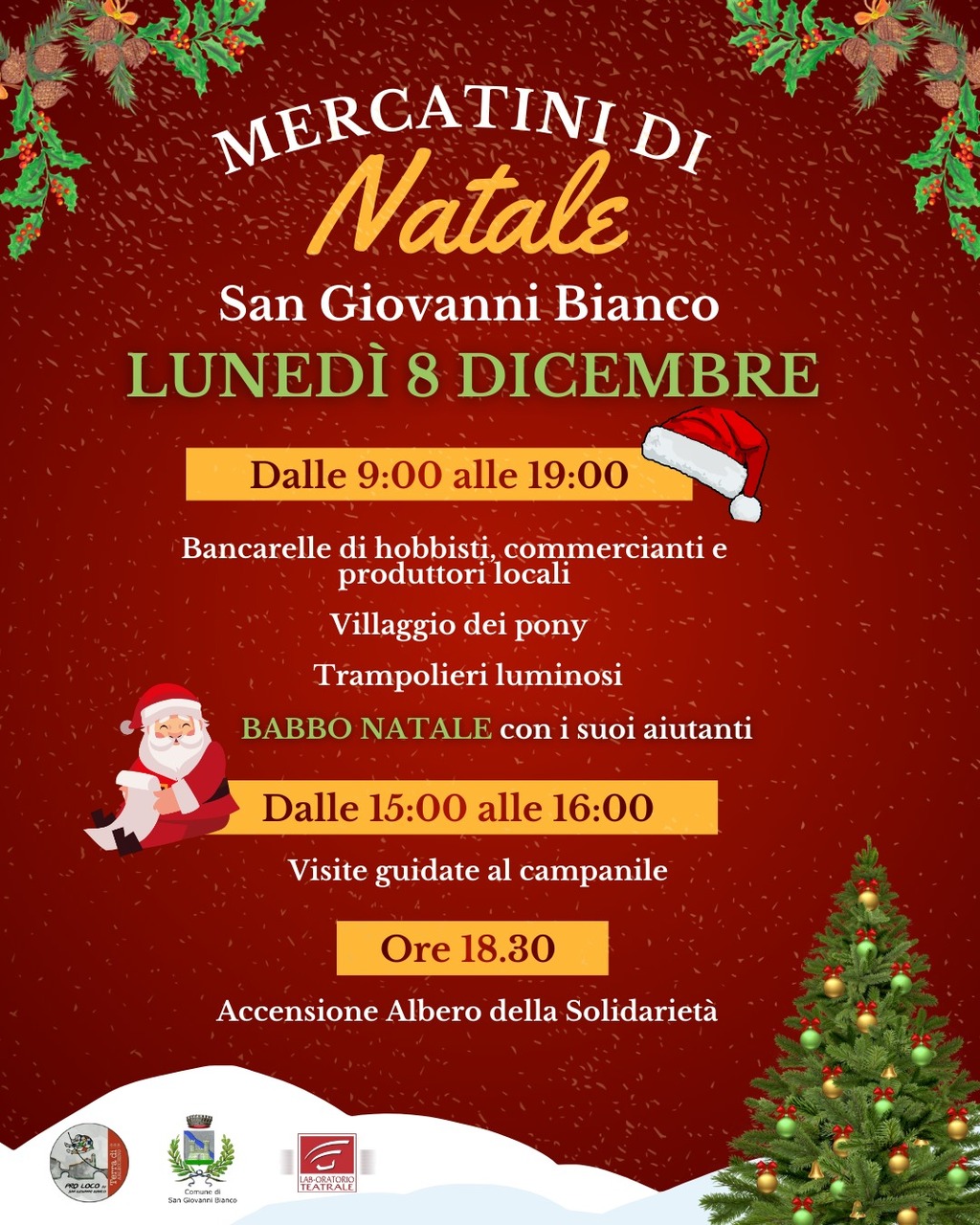 Mercatini di NataleLunedì 8 dicembre San Giovanni Bianco si tinge di oro con le bancarelle di Natale!